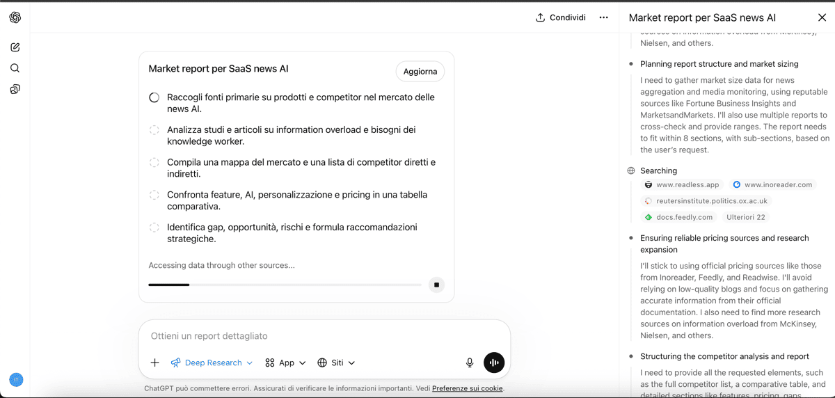 Fare ricerche di mercato con ChatGPT Deep Research significa passare da: